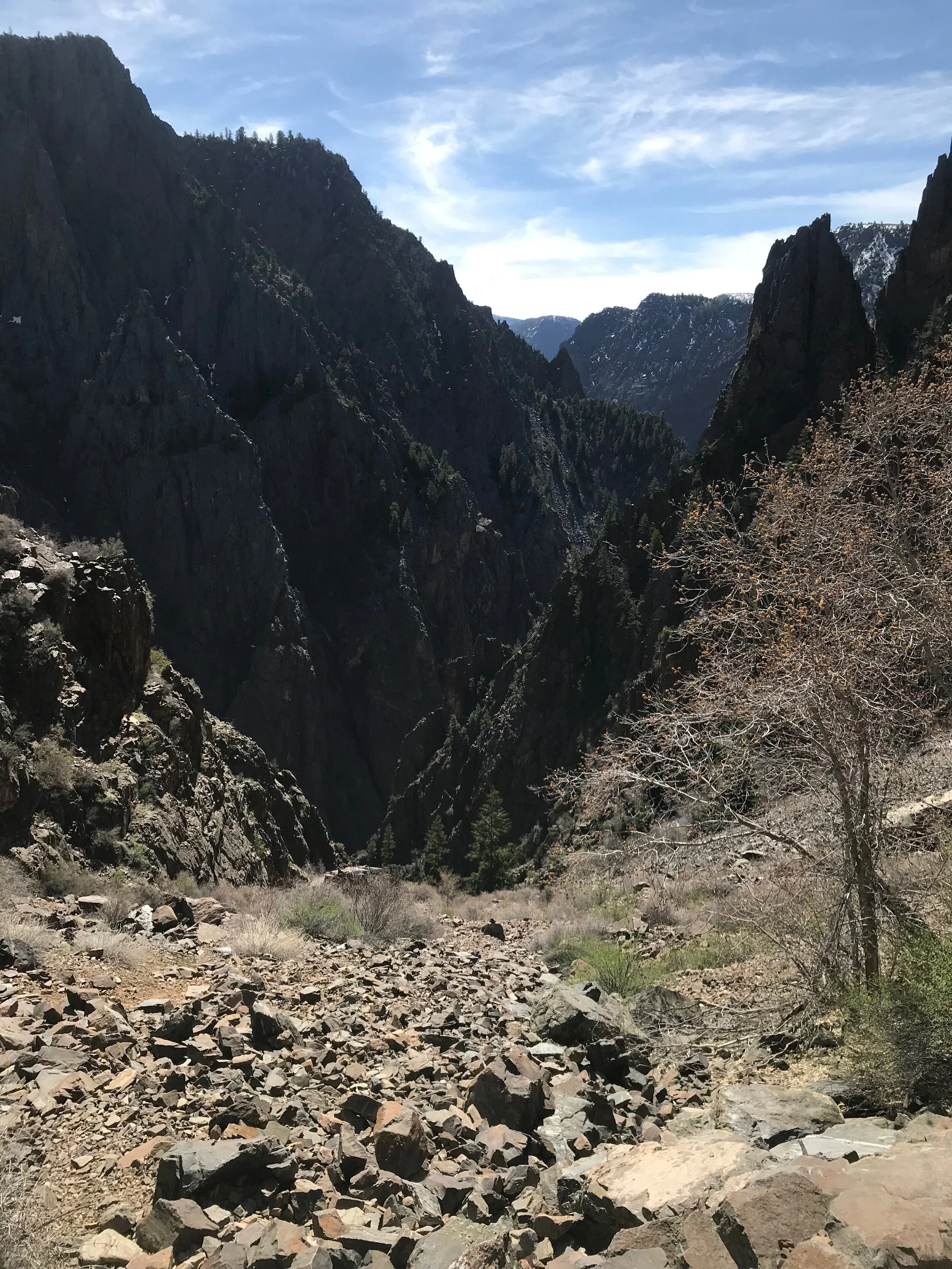 After a long, scenic, early morning drive from Grand Lake, Colorado, where we hike Rocky Mountain National Park, we arrived at Black Canyon of the Gunnison. Having done a lot of research and planning ahead of time, we were crestfallen upon arrival when we found that the North Rim, where we had plotted out much of our hiking, was closed. That being said we made the most of the situation.