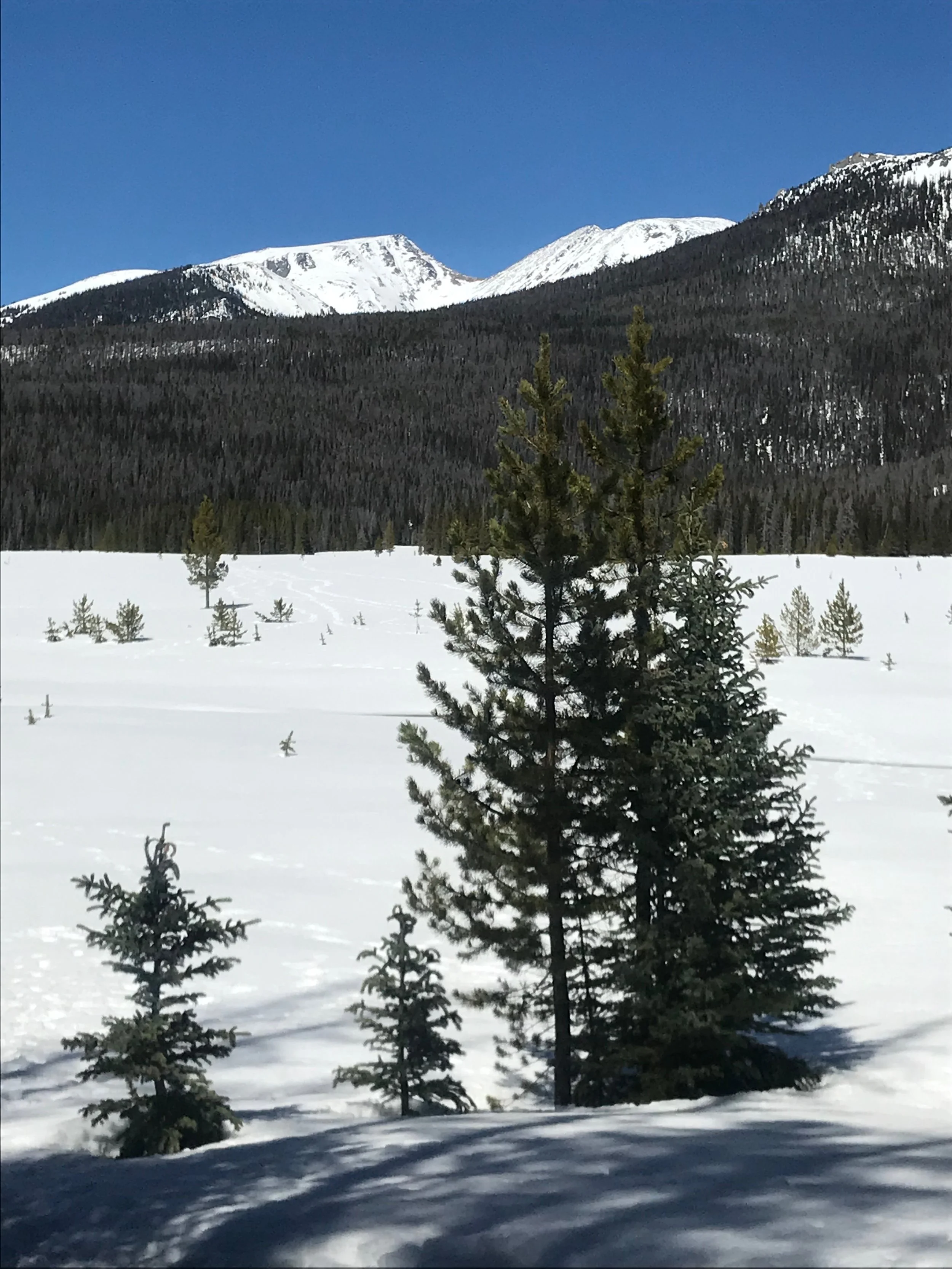 In Rocky Mountain National Park, we were able to see two vastly different portions of a park defined by its mountain range. Our first day of adventure took us to Grand Lake, the windward side of the Rockies. Here we were faced with a good deal of remaining snow, which mean that hiking involved the use of snowshoes. Neither of us had hiked with snowshoes before so it gave us a lot of pause and a good deal of exhaustion at the end of the day.